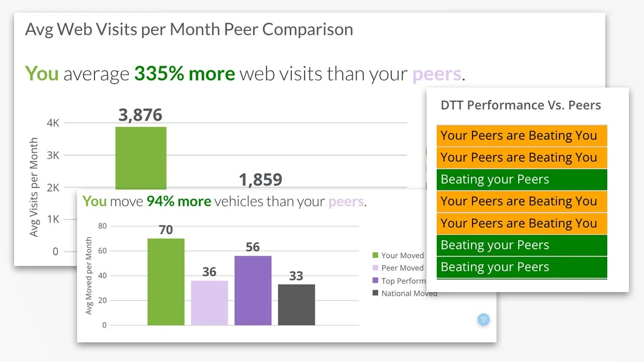 Measure key metrics such as inventory, days to turn, traffic, and leads. This enables you to see how your dealership ranks comparedto peers in your surrounding market you can serve them.