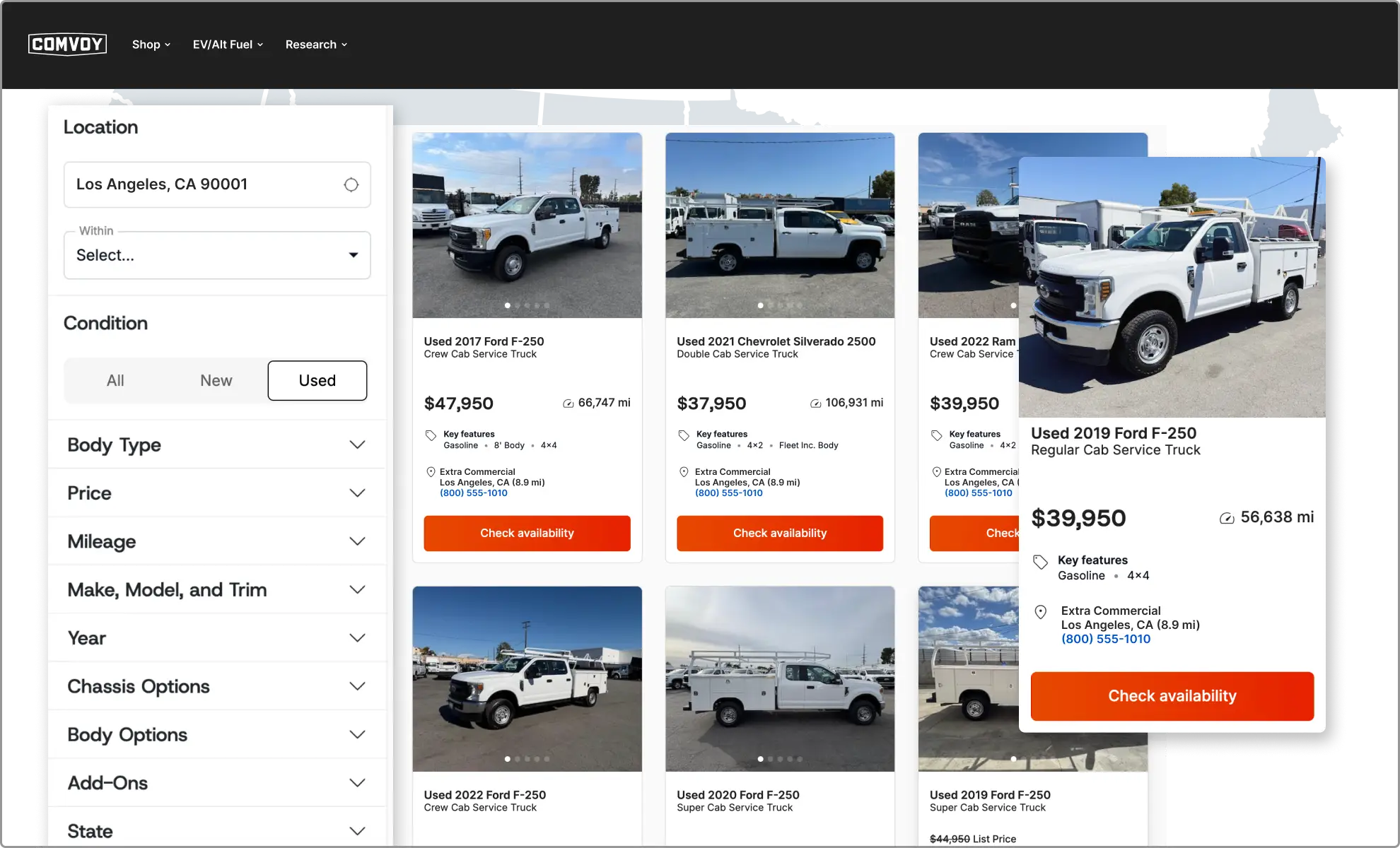 Expand your reach with Comvoy.com, the only configuration searchable marketplace for work-ready trucks and vans. Don’t be limited to just local sales. Have a national presence with your vehicles listed on the site with more than 310,000 monthly users.