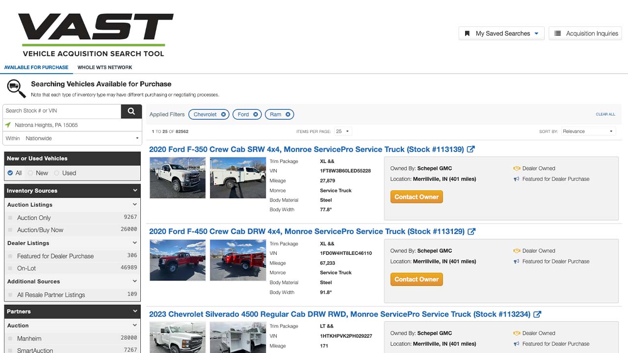 We know that selling work trucks, vans, and pickups is the lifeblood of your commercial department. And we’re committed to offering solutions that help you meet your goals, while also meeting the needs of your business customers. We continue to add new inventory partners and have over 100,000 vehicles available through VAST today. After all, the more vehicles available for you and your commercial customers, the better we can serve you, and you can serve them.